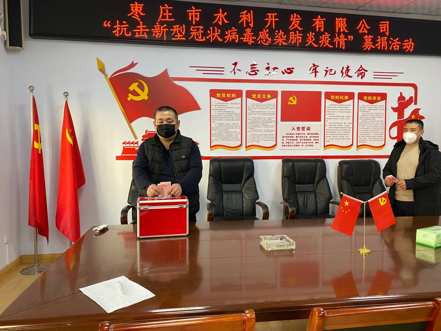 疫情無情,人間有愛。為支持新冠肺炎疫情防控工作,棗莊市水利開發(fā)有限公司執(zhí)行董事、總經(jīng)理岳磊攜公司全體黨員干部職工,于3月2日組織開展了抗擊疫情獻愛心捐款活動,以捐款的方式支援疫情防控工作,積極為抗擊疫情貢獻力量。