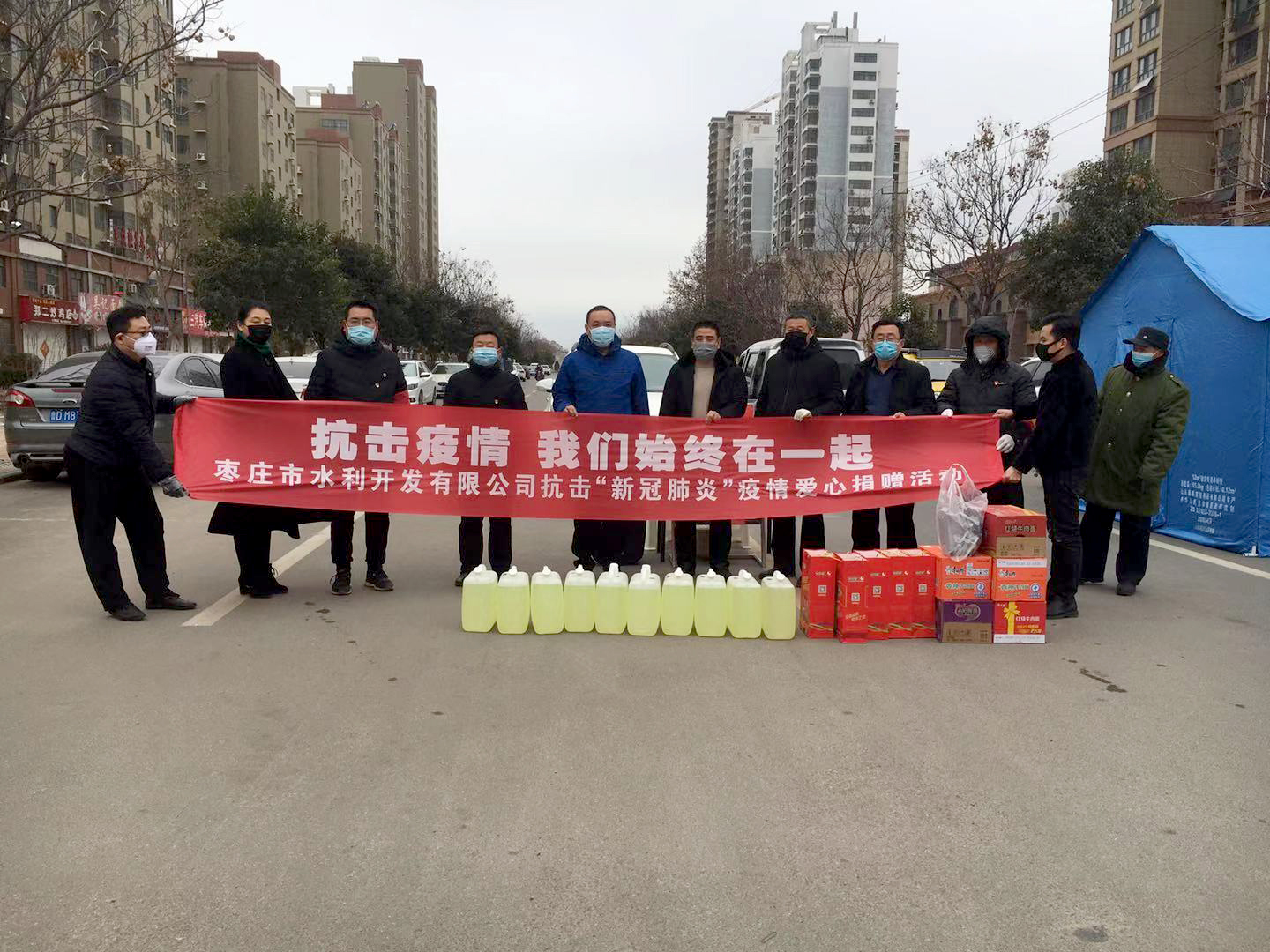 新型冠狀病毒肺炎疫情,牽動(dòng)著國(guó)人的心。在此嚴(yán)峻時(shí)刻,202025日上午,棗莊市水利開(kāi)發(fā)有限公司執(zhí)行董事兼總經(jīng)理岳磊,黨支部委員、副總經(jīng)理劉偉東,副總經(jīng)理鄭濟(jì)營(yíng)及工會(huì)主席、副總經(jīng)理郝玉同等一行前往棗莊市中邵莊社區(qū)組織開(kāi)展了抗擊“新冠肺炎”疫情獻(xiàn)愛(ài)心捐贈(zèng)活動(dòng)。為開(kāi)展新型冠狀病毒防護(hù)工作增添了一份安全保障,為抗擊疫情貢獻(xiàn)了一份力量。