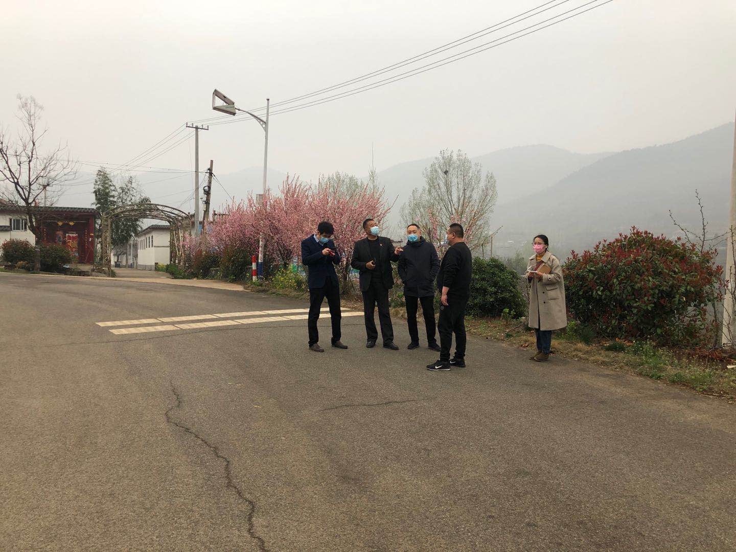 圖為:山亭區(qū)北莊鎮(zhèn)人民政府領導與棗莊市水利開發(fā)有限公司副總經理連永、棗莊市水利勘測設計院周明主任踏勘傳統(tǒng)村落項目現(xiàn)場