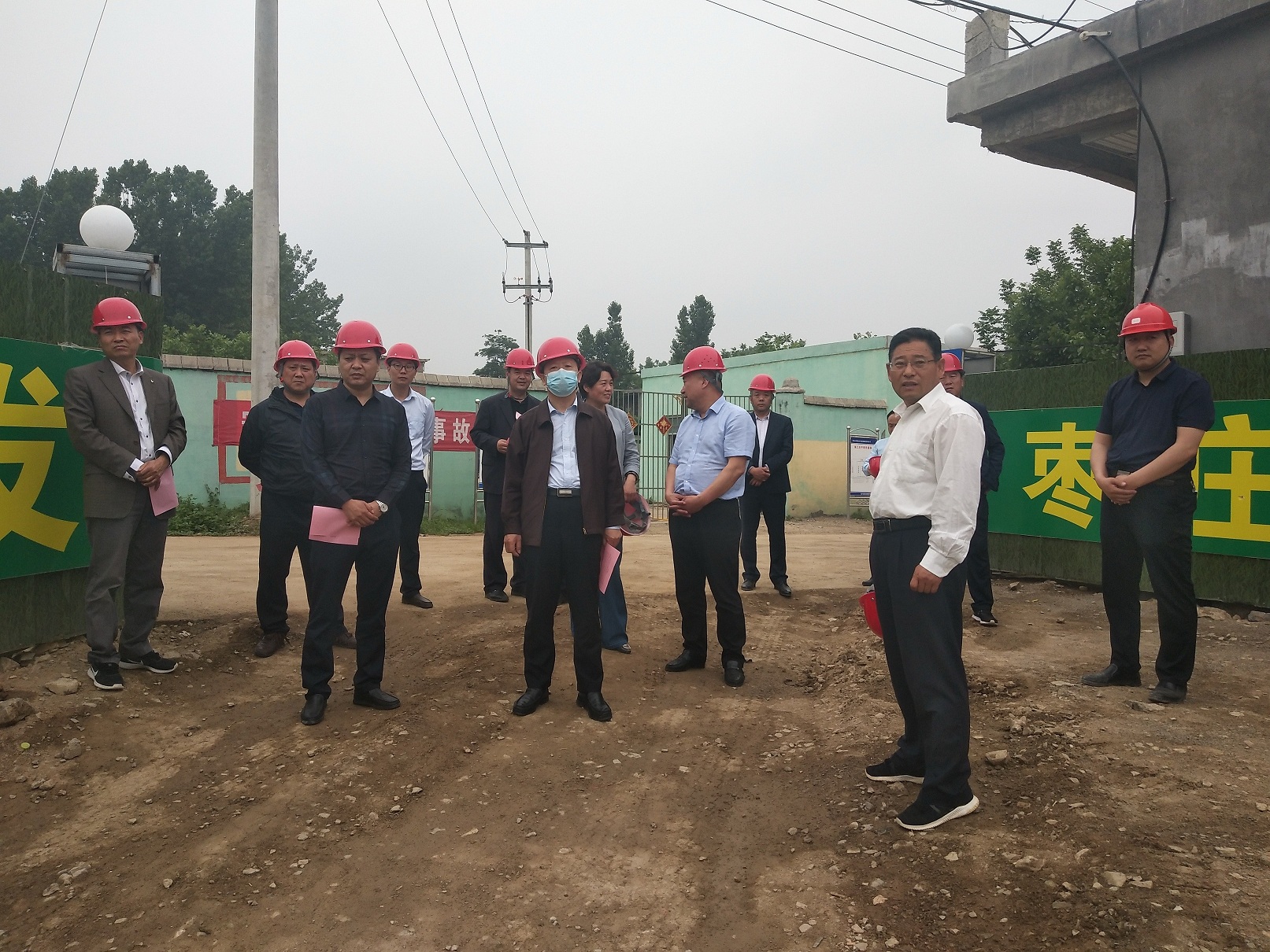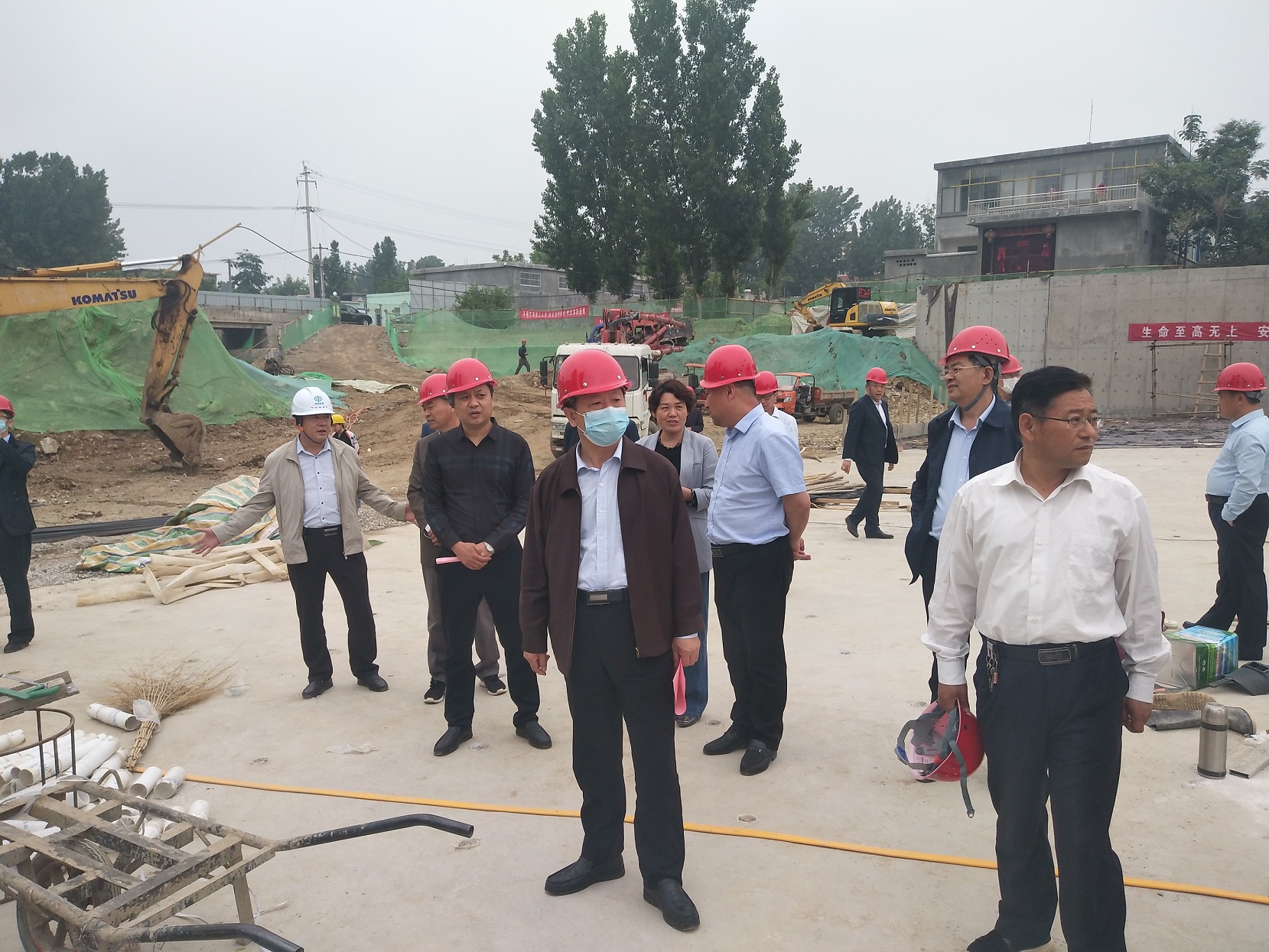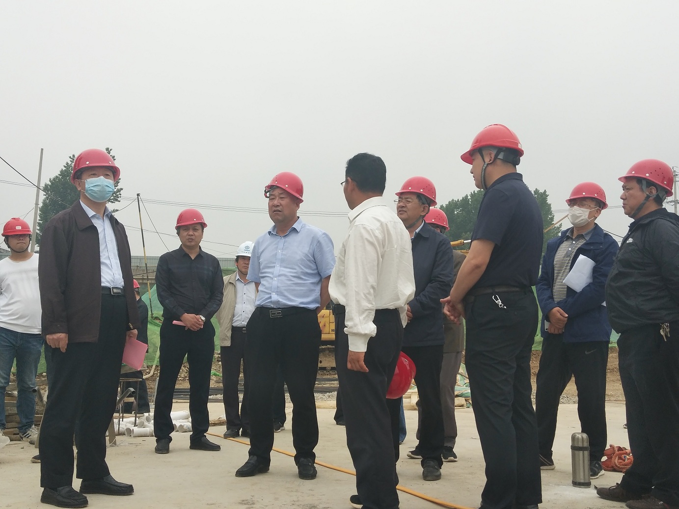 (視察施工現(xiàn)場(chǎng)并聽取進(jìn)度匯報(bào))